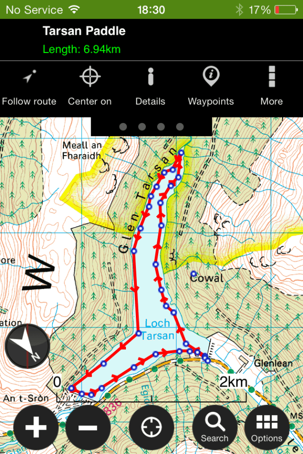 Map of route Posted by explorecowal on July 1, 2014 7kms/4.4 miles This is an image for Loch Tarsan paddle.. Images navigation ← Previous