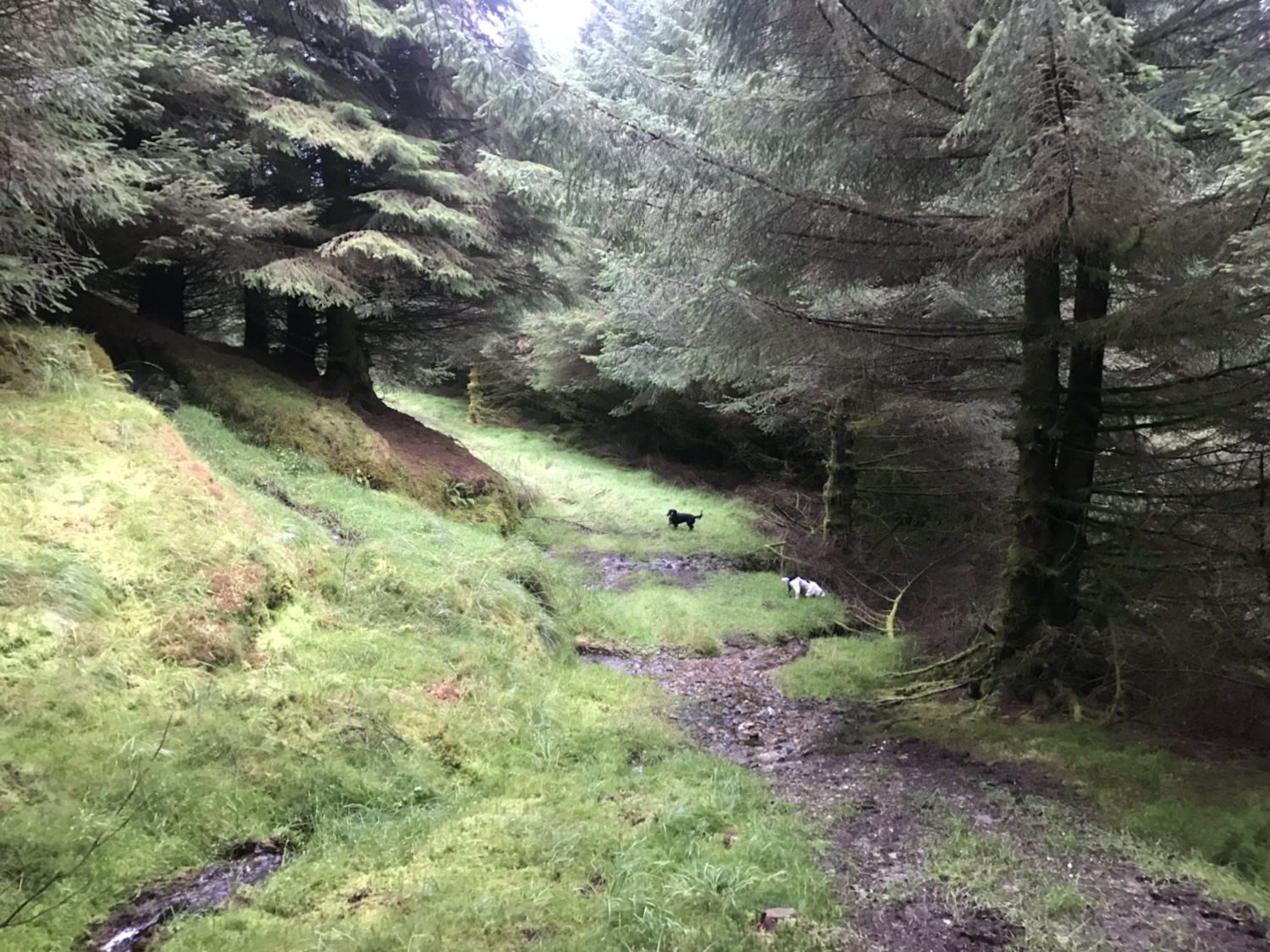 At the end of the road there is a quad track that replaced the firebreak that once existed. This terminates eventually, you leave this by dropping down crossing a wee burn and sucking under a fallen tree. Continuing along the break, a trodden path is evident in parts. Once you reach a burn running across the path you cross it and start climbing through the forest or burn side ( keeping it on the left ).
