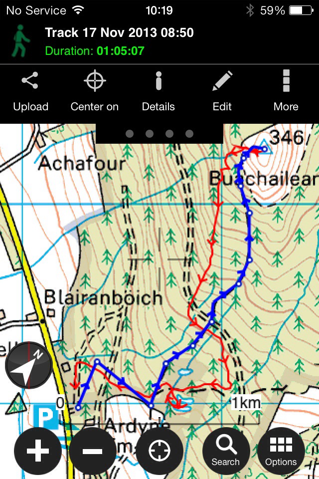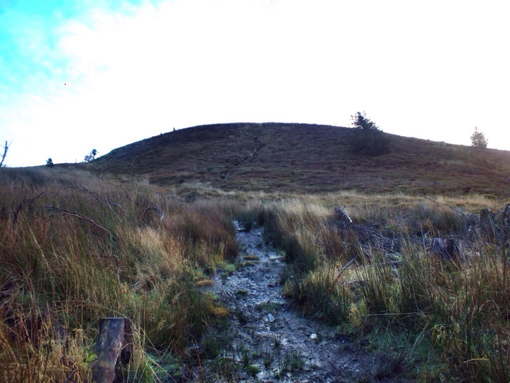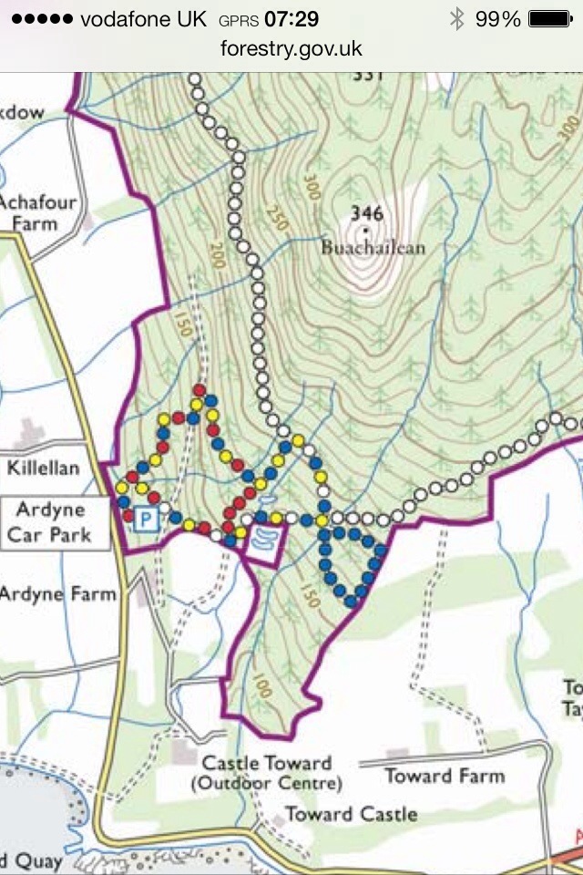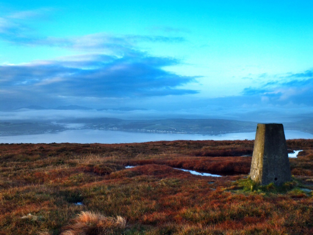 Leaving from the FCS car park at Ardyne,turning right once on the first trail and following it as it passes over an overgrown forestry road. Looking back the view over towards Bute already opening up. Continuing straight up the trail ingnoring any others that lead off,soon joins a forestry road. A left turn is required then a right turn leaving the road for an ATV track. The ATV track is defined and soon follows a wall to the base of the hill. A hole in the wall leads to a track that leads straight up the hillside to the summit. The views to the South over Bute and Arran make the trip well worth it.